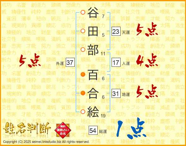 谷(7画)田(5画)部(11画) 百(6画)合(6画)絵(19画)