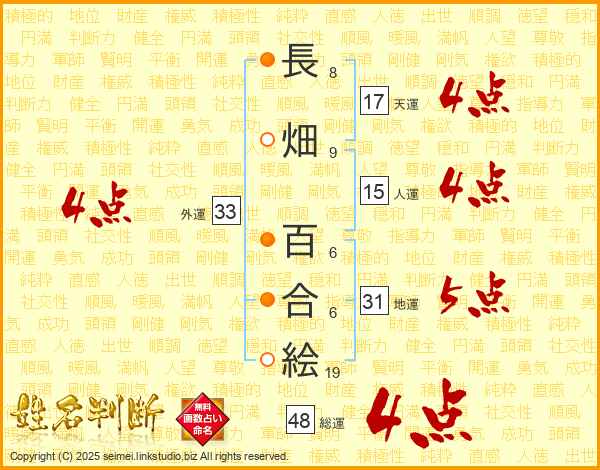 長(8画)畑(9画) 百(6画)合(6画)絵(19画)