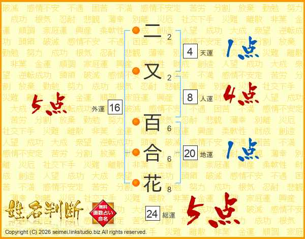 二又百合花さんの外運は16画の5点!