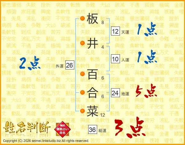 板(8画)井(4画) 百(6画)合(6画)菜(12画)