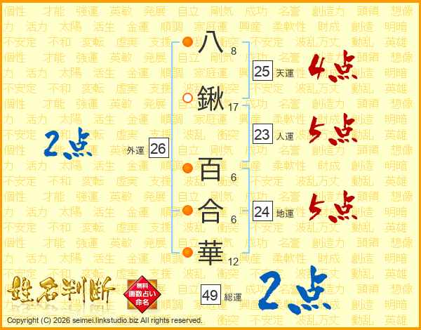 八鍬百合華さんの総運は49画の2点!