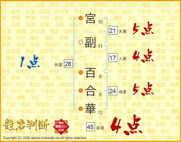宮副百合華さんの総運は45画の4点!