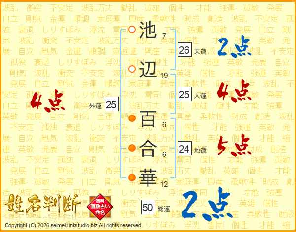 池辺百合華さんの人運は25画の4点!