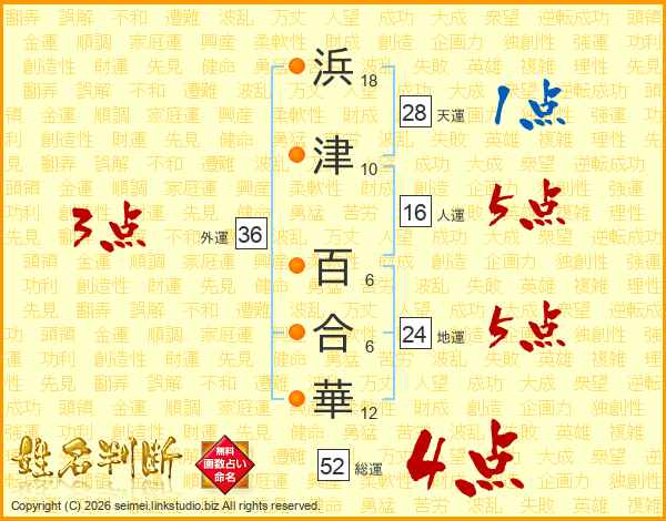 浜(18画)津(10画) 百(6画)合(6画)華(12画)