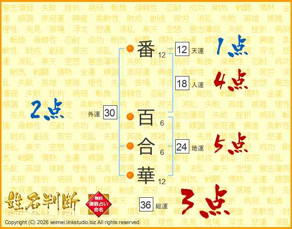 番百合華さんの総運は36画の3点!