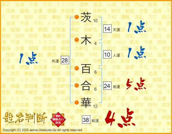 茨木百合華さんの総運は38画の4点!