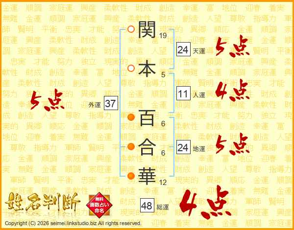 関本百合華さんの総運は48画の4点!