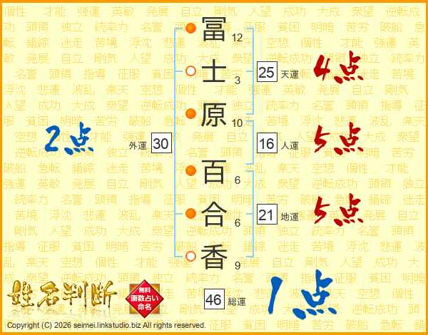 冨士原百合香さんの総運は46画の1点!