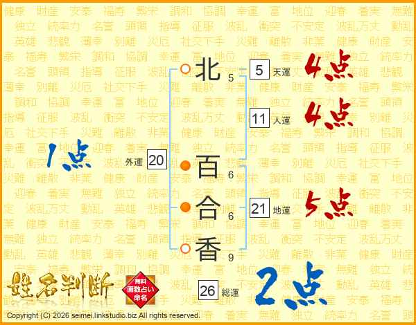 北百合香さんの総運は26画の2点!