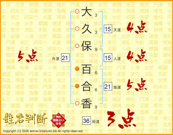 大久保百合香さんの外運は21画の5点!