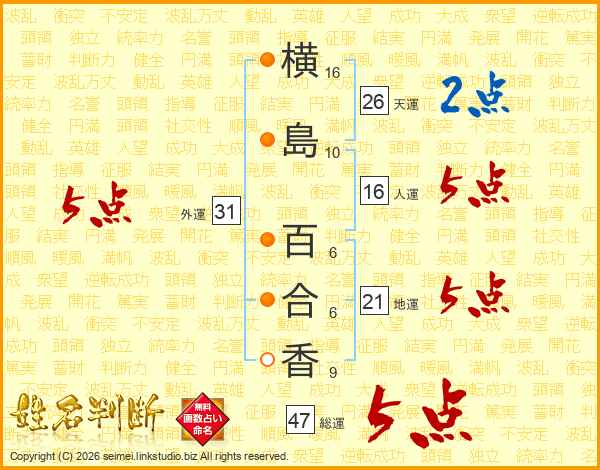 横島百合香さんの総運は47画の5点!