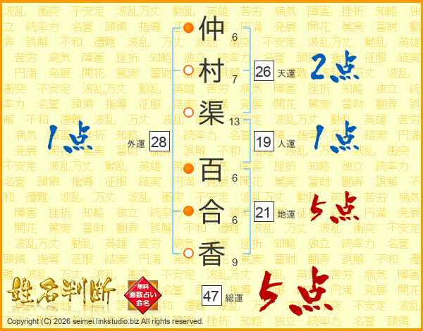 仲村渠百合香さんの総運は47画の5点!