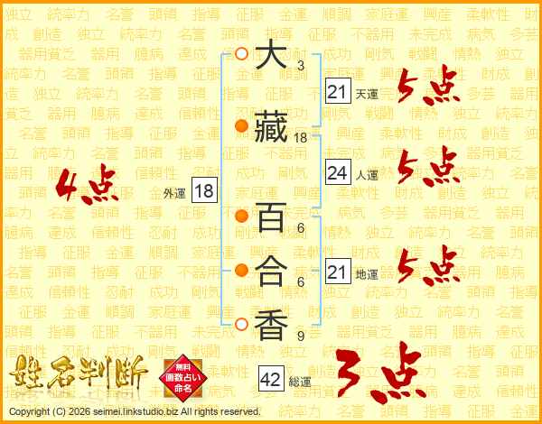 大(3画)藏(18画) 百(6画)合(6画)香(9画)