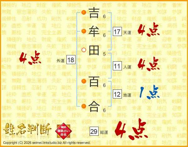 吉牟田百合さんの総運は29画の4点!