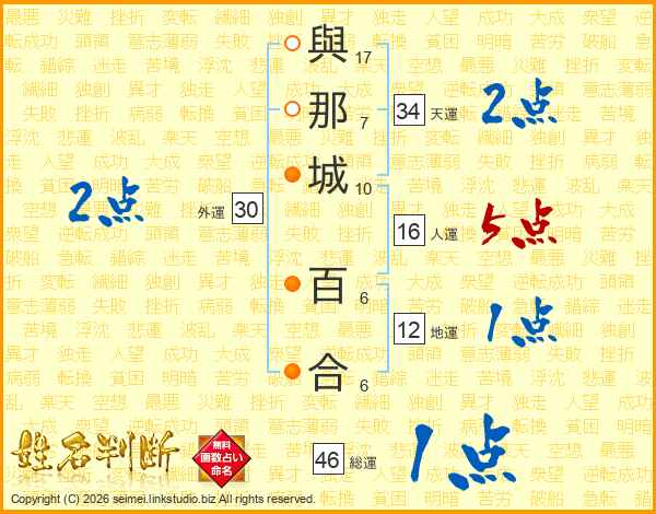 與那城百合さんの総運は46画の1点!