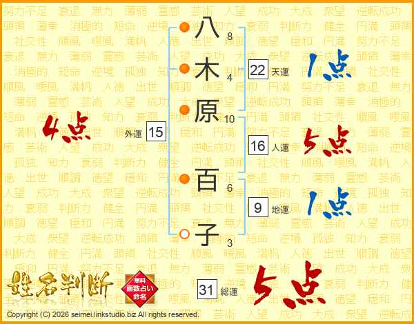八(8画)木(4画)原(10画) 百(6画)子(3画)