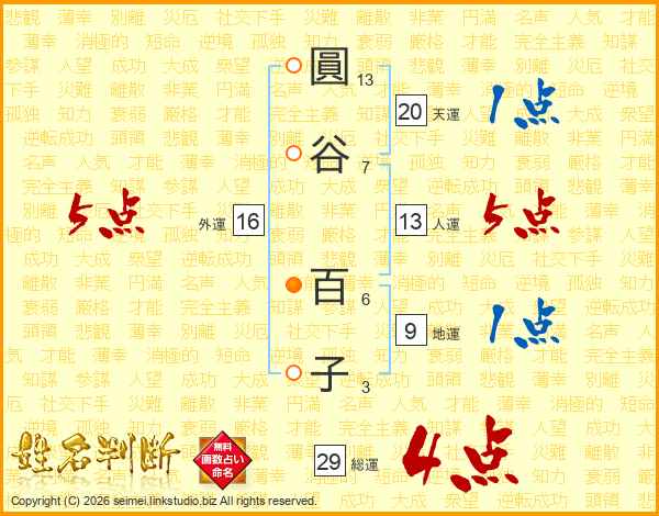 圓谷百子さんの総運は29画の4点!