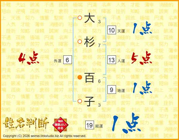 大杉百子さんの総運は19画の1点!