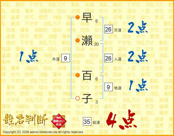 早瀬百子さんの総運は35画の4点!