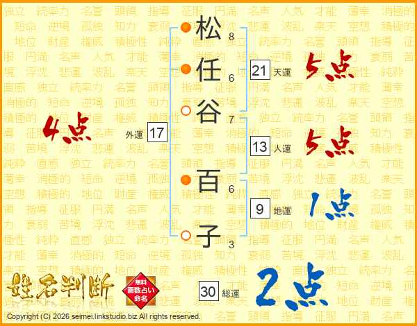 松任谷百子さんの総運は30画の2点!