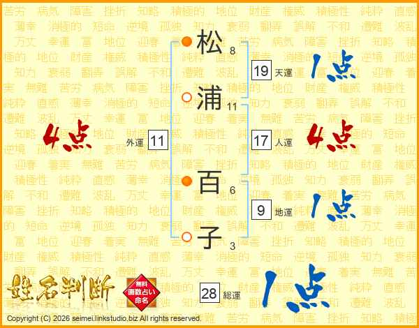 松(8画)浦(11画) 百(6画)子(3画)