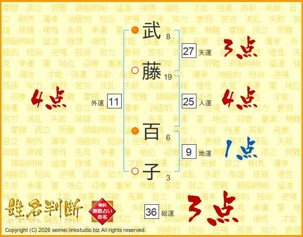 武(8画)藤(19画) 百(6画)子(3画)