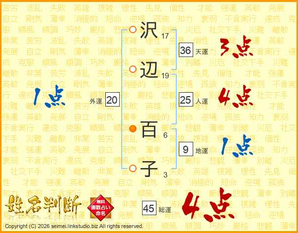 沢辺百子さんの人運は25画の4点!