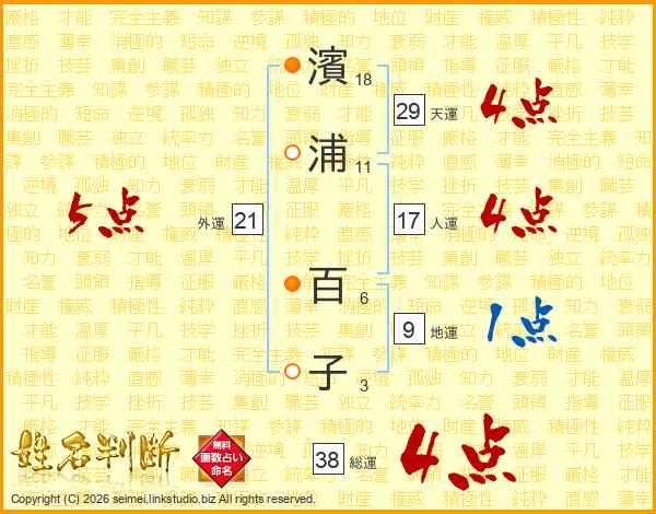 濱浦百子さんの天運は29画の4点!