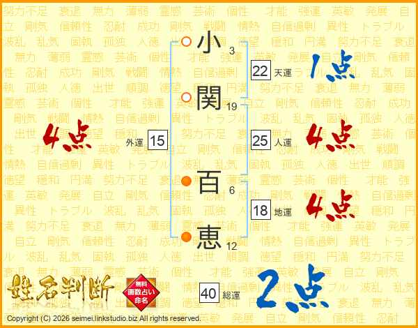 小関百恵さんの人運は25画の4点!