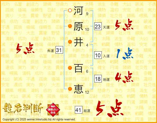河(9画)原(10画)井(4画) 百(6画)恵(12画)