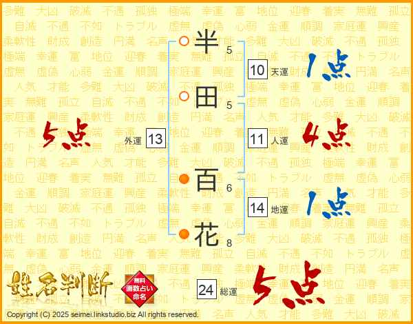 半田百花さんの地運は14画の1点!