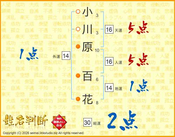 小(3画)川(3画)原(10画) 百(6画)花(8画)