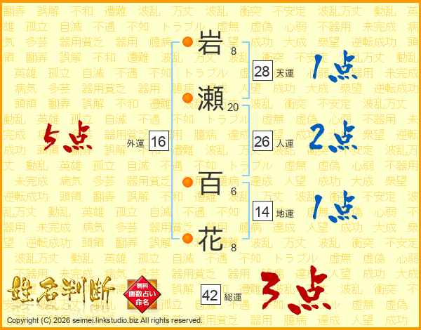 岩(8画)瀬(20画) 百(6画)花(8画)