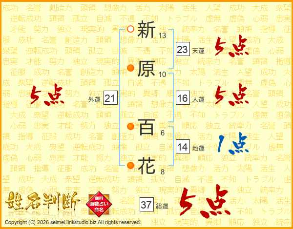 新原百花さんの総運は37画の5点!