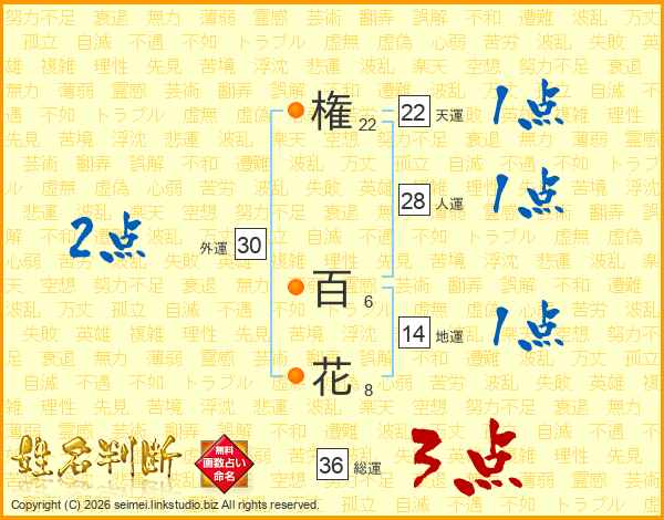 権百花さんの総運は36画の3点!