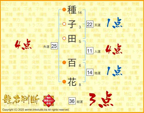 種(14画)子(3画)田(5画) 百(6画)花(8画)