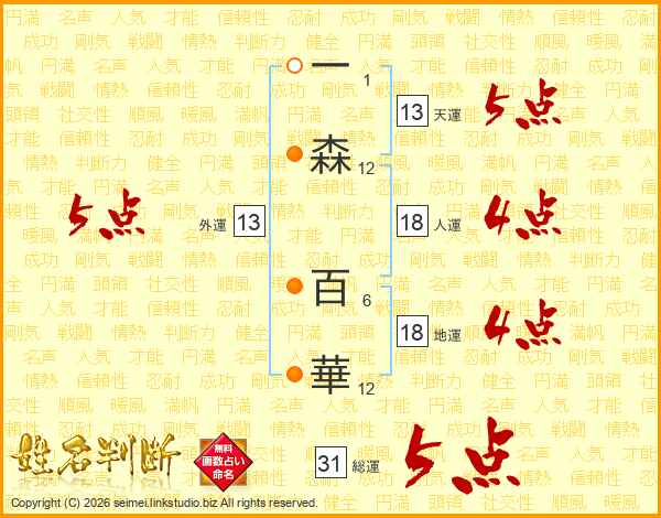 一森百華さんの総運は31画の5点!