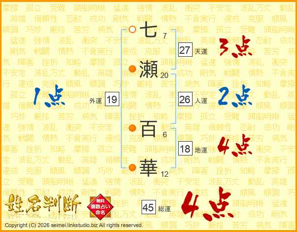 七瀬百華さんの総運は45画の4点!