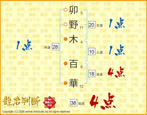 卯野木百華さんの総運は38画の4点!