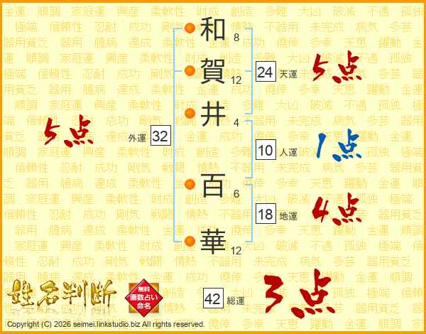 和(8画)賀(12画)井(4画) 百(6画)華(12画)