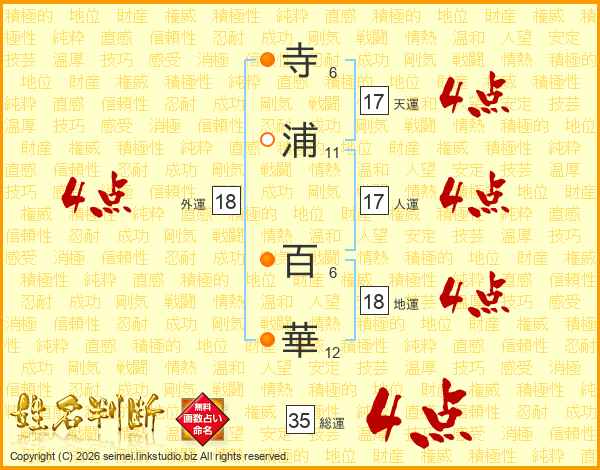 寺浦百華さんの天運は17画の4点!