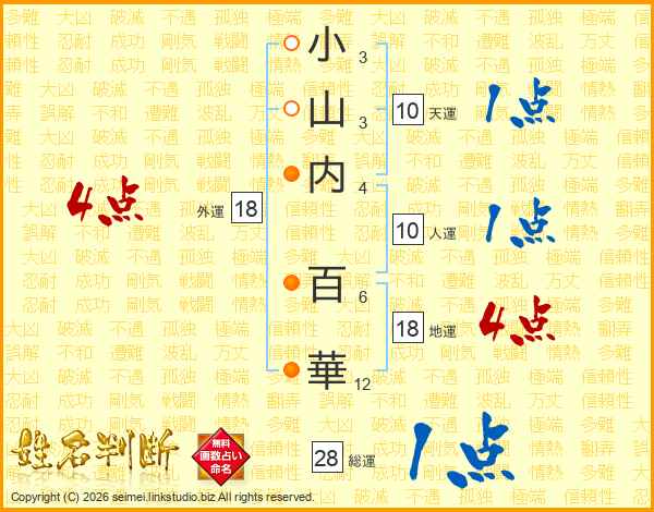 小(3画)山(3画)内(4画) 百(6画)華(12画)