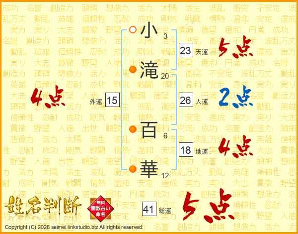 小滝百華さんの総運は41画の5点!