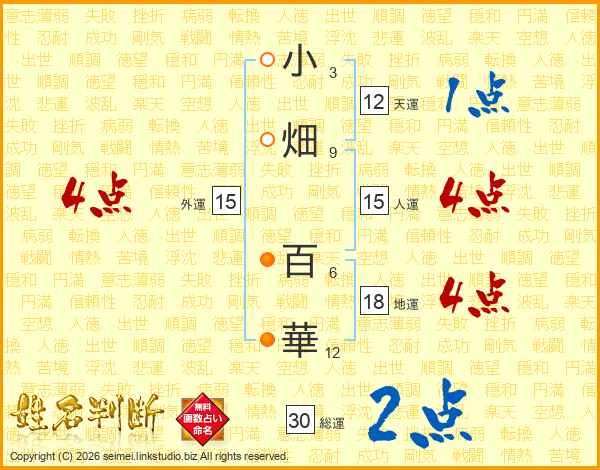 小畑百華さんの総運は30画の2点!