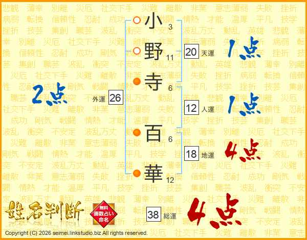 小(3画)野(11画)寺(6画) 百(6画)華(12画)