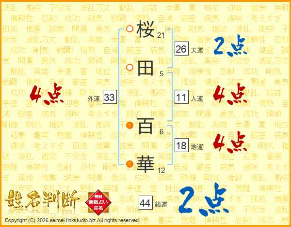 桜田百華さんの外運は33画の4点!
