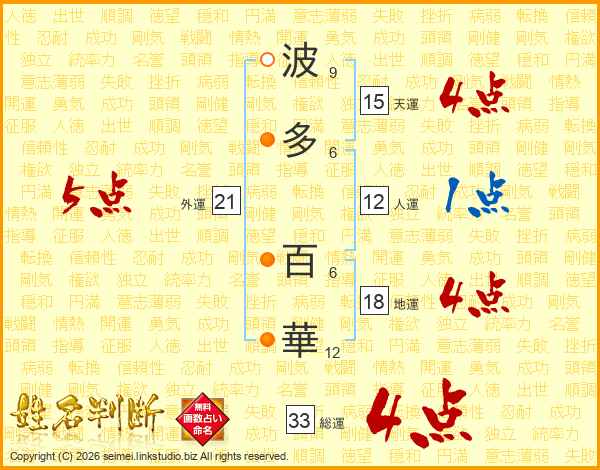 波多百華さんの総運は33画の4点!