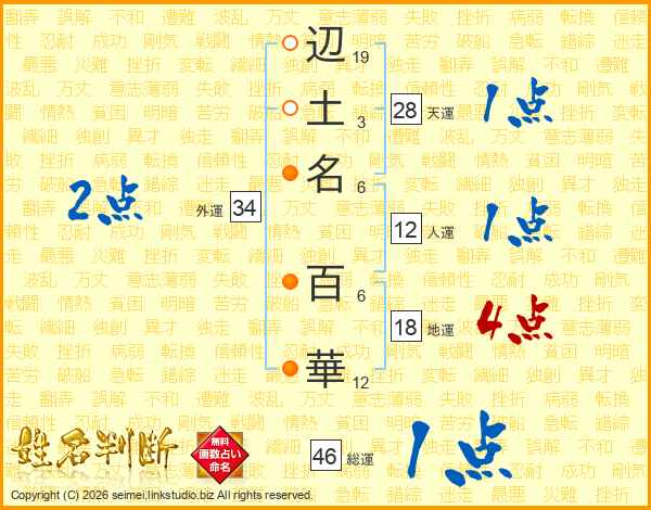 辺(19画)土(3画)名(6画) 百(6画)華(12画)