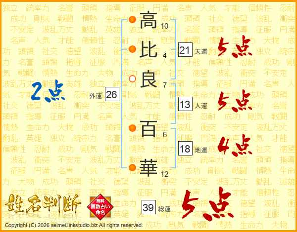 高(10画)比(4画)良(7画) 百(6画)華(12画)