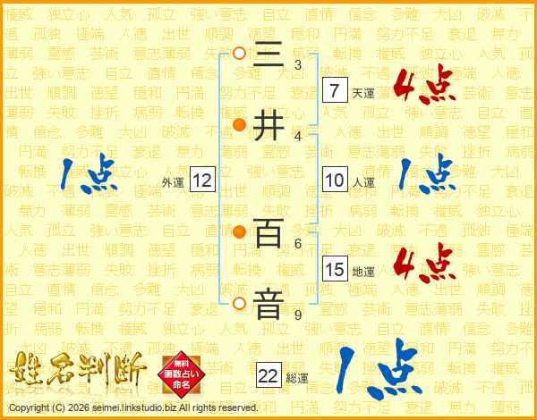 三井百音さんの総運は22画の1点!